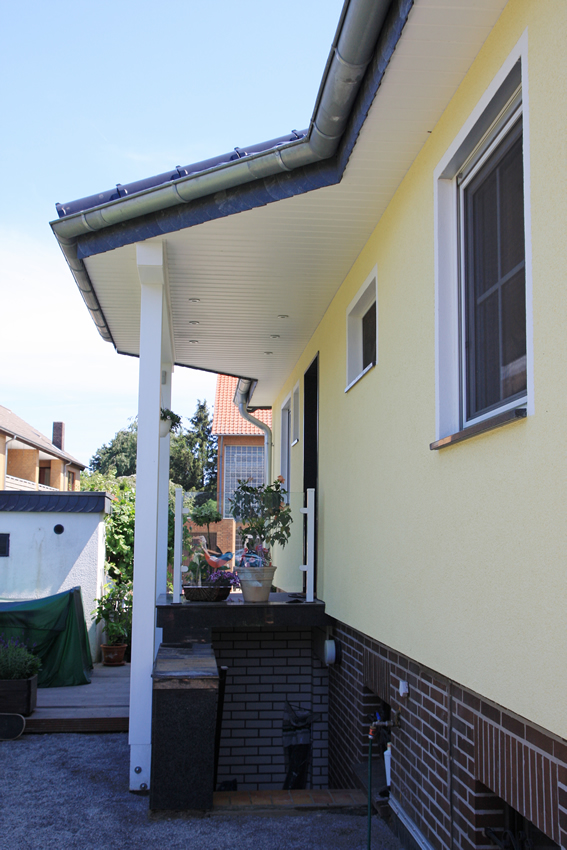 - Zusatzarbeiten Dachrinne, Eingangsüberdachung, Dachüberstandsverkleidung